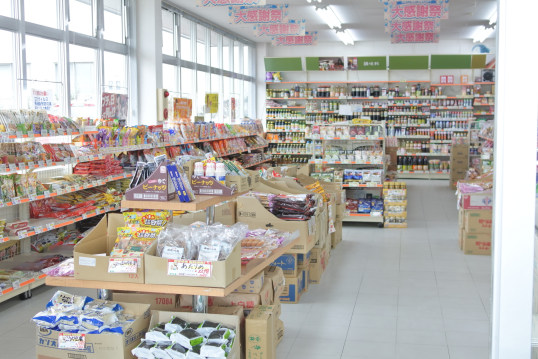規模は小さなスーパーですが、中の半分は菓子で占められ、値段も安いです。