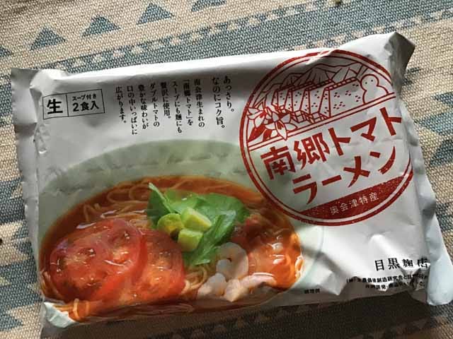 に行きましょう。 通販お取り寄せすると、南郷トマトラーメンは↓の袋で到着です。